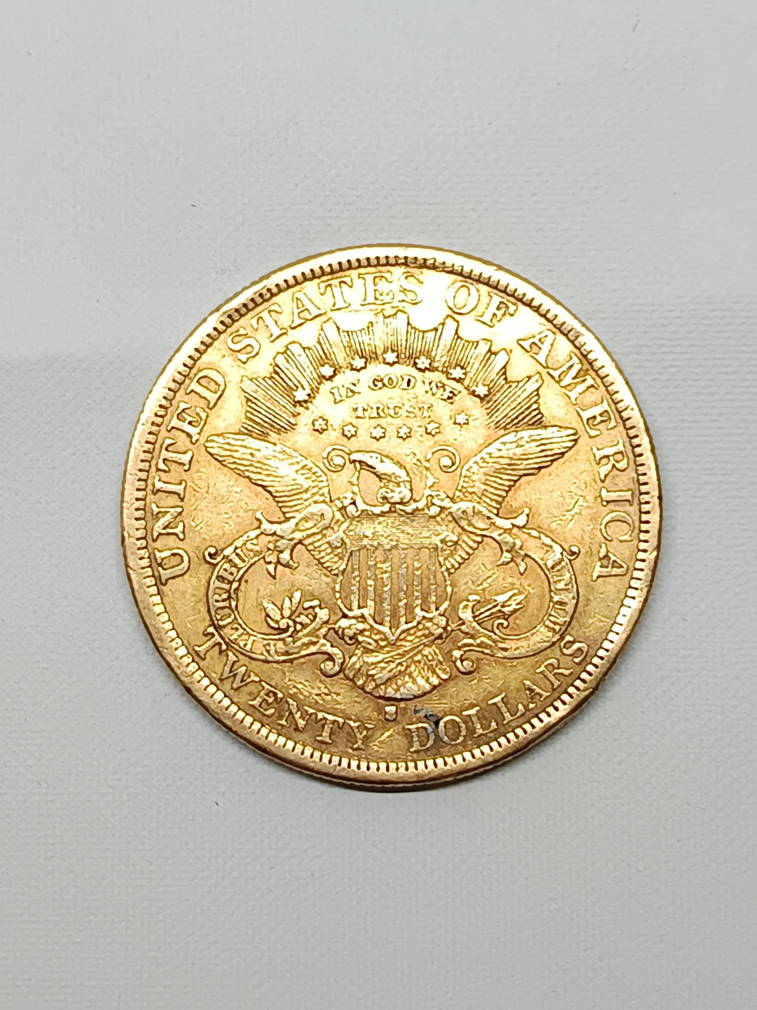 La pièce de Twenty dollars en or de 1877 atelier S pour San-Francisco a été frappé pour 836,000 exemplaires. Cette pièce de monnaie du monde valaient en 2019 environ 1800€ mais actuellement 2025 sa côte est valorisée a environ 3000€.